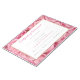 Created from an autograph pad, this stack of certificates of achievement would be a great enhancement for your organisation or pageant to hand out to multiple entrants or qualifiers. A lovely way to show support and congrats to all those for entering. Shown with borders of Pink Roses with a Pink colour of "certificate of achievement" at top beneath roses and all the corresponding text you would need on white with grey text body. Has an inner thin border of golden. Must Customise the centre text area of this item.