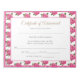 Created from an autograph pad, this stack of certificates of achievement would be a great enhancement for your organisation or pageant to hand out to multiple entrants or qualifiers. A lovely way to show support and congrats to all those for entering. Shown with borders of pink roses with a light golden-colour of "certificate of achievement" at top beneath roses and all the corresponding text you would need on white with grey text body. Has inner thin border of pink.  Must Customise the centre text area of this item.
