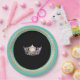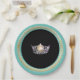 These pageant festive paper plates are great for serving up some fun (and easy clean up too) for your next pageant get together. Add your pageant theme or pageant name if desired. Shown here is an Aqua-Turquoise rim and a gleaming Silver crown print in the centre over chic Black background. Gold coloured regal trim on the rim. Personalise by using the filter option to change colour of crown or border and the "O" to change plate rim colour, or buy as designed.
