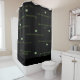 Shower curtain shown in Black with a print of a bevy of gleaming Green crown prints. Uplifting and encouraging messages in coordinating Green text. Customise this item or buy as is.
