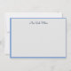 Custom Note Card shown in White with a slim Blue border. Customise this card and change the name to yours or even change the colours. Text is script and in Navy Blue. Look for matching envelopes.