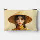 A young girl wearing traditional Vietnamese clothing, which appears to be an áo dài. She is dressed in a vibrant yellow áo dài, intricately embroidered with a striking phoenix pattern. The girl has a delicate face, with red lips, large sparkling eyes, and long black hair gently flowing down.