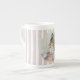 Miss Bunny Drinking Tea on Stripes Bone China Mug
