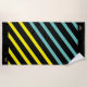 Bright Yellow and Aqua Blue stripes mingle with sexy Black on this beach towel. Both ends have space for customisation and feature a fancy swirl pale Golden-colour crown print on each end of the towel. Customise or buy as designed.