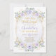 Your Little Miss ONEderful is turning 1! Celebrate this special milestone with our uber pretty 1st birthday invitation. Featuring an elegant composition of lavender overlay adorned with pastel purple floral wreaths and greenery, this beautiful design is sure to make your guests go ooh and ahh!. Click the "customise further" button if you wish to re-arrange and format the style and placement of the text. Comes with a matching purple & gold stripes backside.
