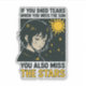 The stick looks amazing. Unfortunately, it would not stick on our suitcase as it was textured. When we found a non-textured (smooth) suitcase, the sticker stuck and looks great. The printing looked awesome.