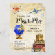 Miss to Mrs themed bridal shower. Travelling from Miss to Mrs adventure luggage globe aeroplane passport watercolor floral design.
