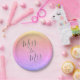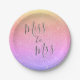 From Miss to Mrs Bridal Shower or Bachelorette Party Pink and Purple Rainbow Pastel Ombre Sparkle and Faux Glitter Paper Plates. Please contact designer for matching items.
