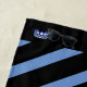 This beach towel is shown in a Black background with bold bright Blue colour stripes and with a print of a gleaming Blue pageant crowns on opposite ends. Personalise with your name, pageant title or favourite phrase.