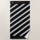 This beach towel is shown in a Black background with bold Grey colour stripes and with a print of a gleaming Silver pageant crown. Has sample text for you to personalise with your own name or title.
