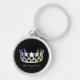 Silver metal colour round key chain with a gleaming Silver Miss USA state type crown in centre on Black background. Text for you to add your name or pageant title and date. Customise.
