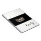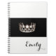 Notebook shown with a photo print of a gleaming Silver coloured crown print on a black background and a personalised name. Notebook shown in White, but choose your colour of background. Customise this item and change the name to yours or take off, or purchase as shown.