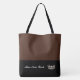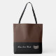 This cute stylish large tote bag is shown in an Burnt Sienna and Black colour block style with a pageant crown and custom text.