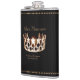 A bit of home comfort anywhere you go to celebrate in style. Bold Gold crown printed on front only, along with text for you to customise with your own. Gold coloured diamond pattern atop and bottom of flask. Silver, Black and Gold colourings. Miss USA style crown.