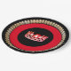 These pageant festive paper plates are great for serving up some fun (and easy clean up too) for your next pageant get together. Add your pageant theme or pageant name if desired. Shown here is a bright Red rim and a gleaming Coral-Red crown print in the centre over chic Black background. Gold coloured regal trim on the rim. Personalise or buy as designed.