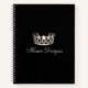 This spiral recipe notebook is shown in sleek Black with a print of a gleaming Silver crown on the cover and has graph paper inside. Beneath the crown is the sample word of "home Designs" in fancy script waiting for you to personalise to your theme. Back cover in solid colour of Black with a small silver crown at bottom.