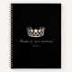 This spiral recipe notebook is shown in sleek Black with a print of a gleaming Silver crown on the cover and has great layout for your ease of adding in your own recipes. Beneath the crown is a space for your custom title and style of text. We've created a sample for you to follow or simply add in place your own style. Back cover in solid colour of Black with a small silver crown at bottom of page along with your custom choice of year [shown is 2018].