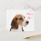 Who can you resist the cute face of Beagle puppy dog. This fun Miss You greeting postcard features a brown, black and white Beagle puppy on a crisp clean white background. Postcards are the economical alternative to greeting cards when you want to let someone know your thinking of them. Doggy greetings will bring smiles to your family and friends.