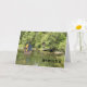 Miss You card for two children at Summer Camp. The front of the card has a small pond in a wooded area with a darker skinned boy and girl. The boy is in a small sail boat and the girl is standing on the dock. This card can be used for twins at camp, a boy, or a girl, or just a brother and sister. Thanks to the hungryjpeg for some of the elements in the design