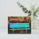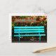 Bright green, empty bench in park. Text “Something’s Missing …” on outside and inside reads “YOU!” Can be used for missing you, romantic, when someone moves, and other situations.
