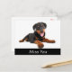 Love at first sight....Who can resist the beautiful face of Rottweiler puppy dog. Let this cute Rottie help you send Miss you greetings to your friends and family. The Postcard features a black and brown Rottweiler dog resting on a white background. The greeting Miss You is accented by a black band across the bottom of the card. Postcards are an economical alternative to greeting cards when you want to let someone know your thinking of them.