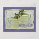 Save postage and envelope/paper when you send a postcard. The cover design includes digitally altered photographs of two green spiral shaped tea cups with sprigs of mint sticking out of the top. Personalise the template text, remove text or click customise to select a font style, size, and colour you prefer.
