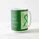 Missing Child uses a green awareness ribbon to show support for its awareness. This custom mug features green awareness ribbon guardian angel art paintings with the message "I Hope and Support Missing Child Awareness!" The custom green awareness guardian angel ribbon art picture coffee cups or mugs can be customised with personalised messages to make great cause mugs for awareness fundraisers, awareness cup gifts, or other special events or cause support occasions. Make your own customised words for a personal message of hope and support to share!