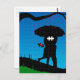 A courting couple, silhouette, kissing under an umbrella, during a downpour of red cupids hearts set into a jigsaw frame with the heart missing from its place.
