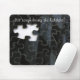Leave your statement on this whimsical mouse pad. This mat sports a close-up photograph on a blue streaked black segment of a jigsaw puzzle exposing one missing piece.  A concept  design for individualism, independence, the missing puzzle piece or whatever you'd like.  Under "Personalise it" fill in the template fields, remove text completely or click "Customise it!" to select a font style, size and colour you prefer.