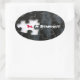 What a deal with four stickers per sheet! Share with friends and family. Use this oval sticker with this close-up photograph on a blue streaked black segment of a jigsaw puzzle exposing one missing piece to make your statement. A concept design for individualism, independence or for whatever reason you'd like it. Under "Personalise it" fill in the template fields, remove text completely or click "Customise it!" to select a font style, size and colour you prefer.