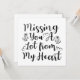 Awesome way to say Missing you a lot from my heart cursive decorative typography design for people who are missing their loved ones so so much and want to say them i miss you with this beautiful and cool design. Give it as a gift for friend, relative, husband, wife, mother, father, kids, boyfriend, girlfriend, brother, sister, grandpa, grandma, uncle or aunt.