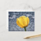 A sentimental missing you postcard with a beautiful photograph of a yellow tulip flower against a background of shimmering blue water. The text that says I miss you can be personalised.