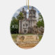 Unique 2 sided ceramic ornament featuring Mission Concepción on the front with a symbolic photo, "Sacred" on the reverse. Change the year date to the current date.