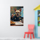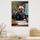 Lieutenant Lick isn’t just cute—he’s calling the shots. Dressed in a pristine Army uniform with shiny medals, this French Bulldog stands (er, sits) in charge of a command centre operation. With a bone-shaped pointer stick aimed at a giant map, he oversees snack logistics and toy deployment. Charts are everywhere, and so are his treats. His face might look serious, but that grin says otherwise. A perfect blend of discipline, doodles, and delicious strategy.