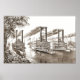 The Mississippi River paddlewheel steamboat competition, "The Race for the Buckhorns". The defending riverboat champion, 'Queen of the West', wears the trophy antlers proudly between her smokestacks. From an original 19th century (1866) lithograph by Fanny Palmer. All Rights Reserved © 2014 padre art