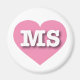 This magnet features a vibrant pink heart containing the bold, white, upper case letters MS, the official abbreviation for Mississippi, the Magnolia State.