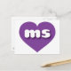 This postcard features a vibrant purple heart containing bold, rounded, white lower case letters ms, a playful version of the abbreviation for Mississippi, the magnolia state. The reverse side of the postcard is blank, awaiting your handwritten sentiments or customised text.