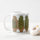 A collection of reconstructed Mississippian Culture repousse copper plates avian thunderbird designs wrapped around a mug.