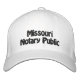 Advertise a Missouri notary public business with style and pride. Makes a great gift for any notary who provides legal services to the public. This black thread design is suitable for white and light-coloured backgrounds. Easily customised with a wide variety of fonts and thread colours.
