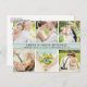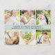 Elegant wedding thank you post card template features six (6) spaces for wedding day portraits with a custom mist green / blue and black monogram on the front and thank you message that can be personalised on the back. The mist and black colour scheme can be modified to coordinate with your photos. Photo filters are available via customise.
