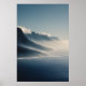 Mist-Covered Coastal Mountains Sunrise Glow Poster