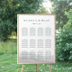 Wedding guest seating chart matches our Mist collection, featuring a sheer watercolor wash of pale grey along the bottom, with charcoal off-black lettering.