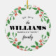 A holiday classic, this wreath of holly and mistletoe encircles your family monogram and classic black type, while on the back it encircles your family names and the year your family became one.