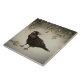 A black crow under green mistletoe make this a unique holiday ceramic tile.