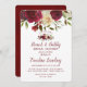 Mistletoe Manor Watercolor Lush Winter Roses Design with Hand Painted Florals, Holly Berry Leaves, Pine Sprig Foliage. Colourful Marsala, Wine Merlot Red, Burgundy, Ivory Cream, and Green. With Swirly Chic Typography Brush Script Fonts, watercolor paint brush strokes, and Elegant floral Border - Wedding Brunch & Bubbly Bridal Shower Invitations!