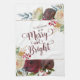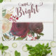 Mistletoe Manor Watercolor Roses & Flowers Design with Hand Painted Stems, Vines, Leaves, Foliage. Colourful Marsala, Wine Red, Merlot, Ivory Cream, Burgundy, and Hints of Yellow. With Swirly Chic Hand Lettered Brush Script Typography Fonts, Rose Gold Glitter Foil Geometric Frame, and Elegant floral Bouquet- Christmas & Holiday tis the season to be Merry and Bright Kitchen towels!