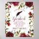 Mistletoe Manor Watercolor Lush Winter Roses Design with Hand Painted Florals, Holly Berry Leaves, Pine Sprig Foliage. Colourful Marsala, Wine Merlot Red, Burgundy, Ivory Cream, and Green. With Swirly Chic Typography Brush Script Fonts, and Elegant floral Border- Wedding Please Sign our Guestbook Sign with Chic Vintage Fountain Feather Pen!
