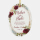 Mistletoe Manor Watercolor Lush Roses Design with Hand Painted Florals, Holly Berry Leaves, Pine Sprig Foliage, and Watercolor Paint Brush Strokes. Colourful Marsala, Wine Merlot Red, Burgundy, Ivory Cream, and Green. With Swirly Chic Typography Brush Script Fonts and Rose Gold Elegant Floral Oval Frame - Mother of the Bride Heartfelt Quote Keepsake Ornament!