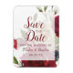 Mistletoe Manor Watercolor Lush Winter Roses Design with Hand Painted Florals, Holly Berry Leaves, Pine Sprig Foliage. Colourful Marsala, Wine Merlot Red, Burgundy, Ivory Cream, and Green. With Swirly Chic Typography Brush Script Fonts, Rectangle Frame, and Elegant floral design- Wedding Save the Date Magnets!