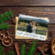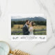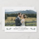 Photo thank you wedding card to say thank you and wish your wedding guests merry Christmas. Add your wedding photo and, on the back, wishes for the holidays and new year by hand. Add your names as well, framed by mistletoe twigs. Christmas themed wedding thank you card with mistletoe twigs.